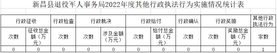 三、 新昌縣退役軍人事務局2022年度行政執法數據表