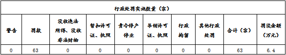 本部門2023年度行政處罰總數為63宗,罰沒收入6.4萬元。