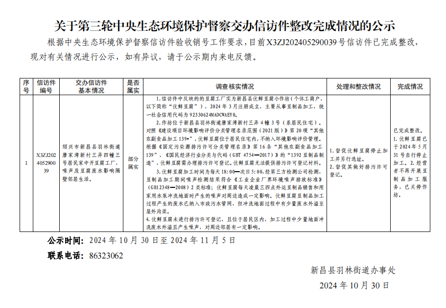 關于第三輪中央生態環境保護督察交辦信訪件整改完成情況的公示