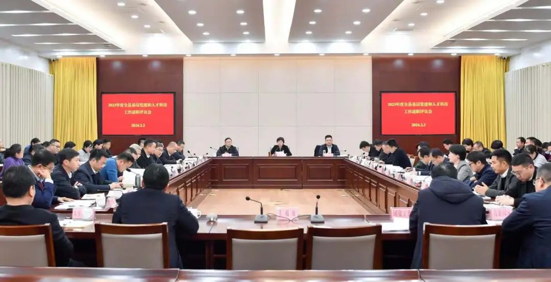 2月2日下午,全縣基層黨建和人才科技工作述職評議會召開。縣委書記黃旭榮主持會議并講話,市委組織部部務會議成員、市委兩新工委專職副書記周勝到會指導,縣領導王奇洲、謝昉等出席會議。