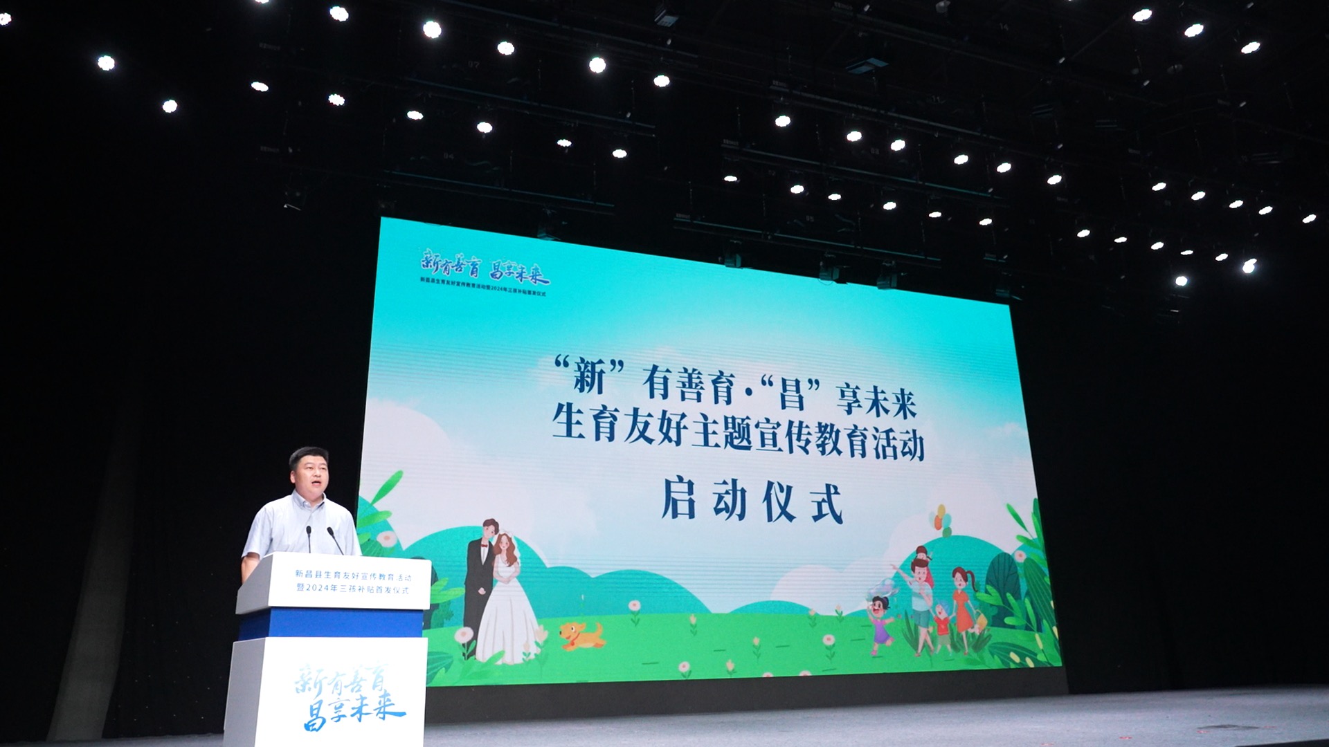 在第31個國際家庭日到來之際,新昌縣人口均衡領導小組辦公室、新昌縣衛生健康局、新昌縣計劃生育協會聯合舉辦“新”有善育 · “昌”享未來——新昌縣生育友好主題宣傳教育活動暨2024年三孩補貼首發儀式。縣府辦副主任孟黎,縣人口均衡發展領導小組辦公室主任、縣衛生健康局局長呂亦斌,縣計劃生育協會專職副會長梁鵬出席活動,縣人口均衡發展領導小組各成員單位負責人,融媒體中心、商務局負責人,各鄉鎮(街道)分管領導、衛健干部,三孩家庭代表、新婚夫婦代表等百余人參加活動。?