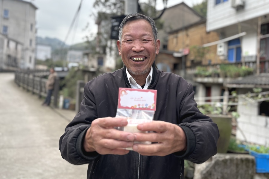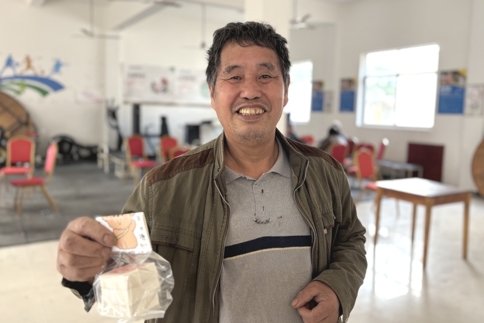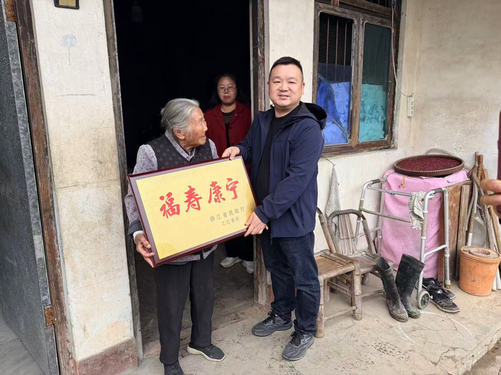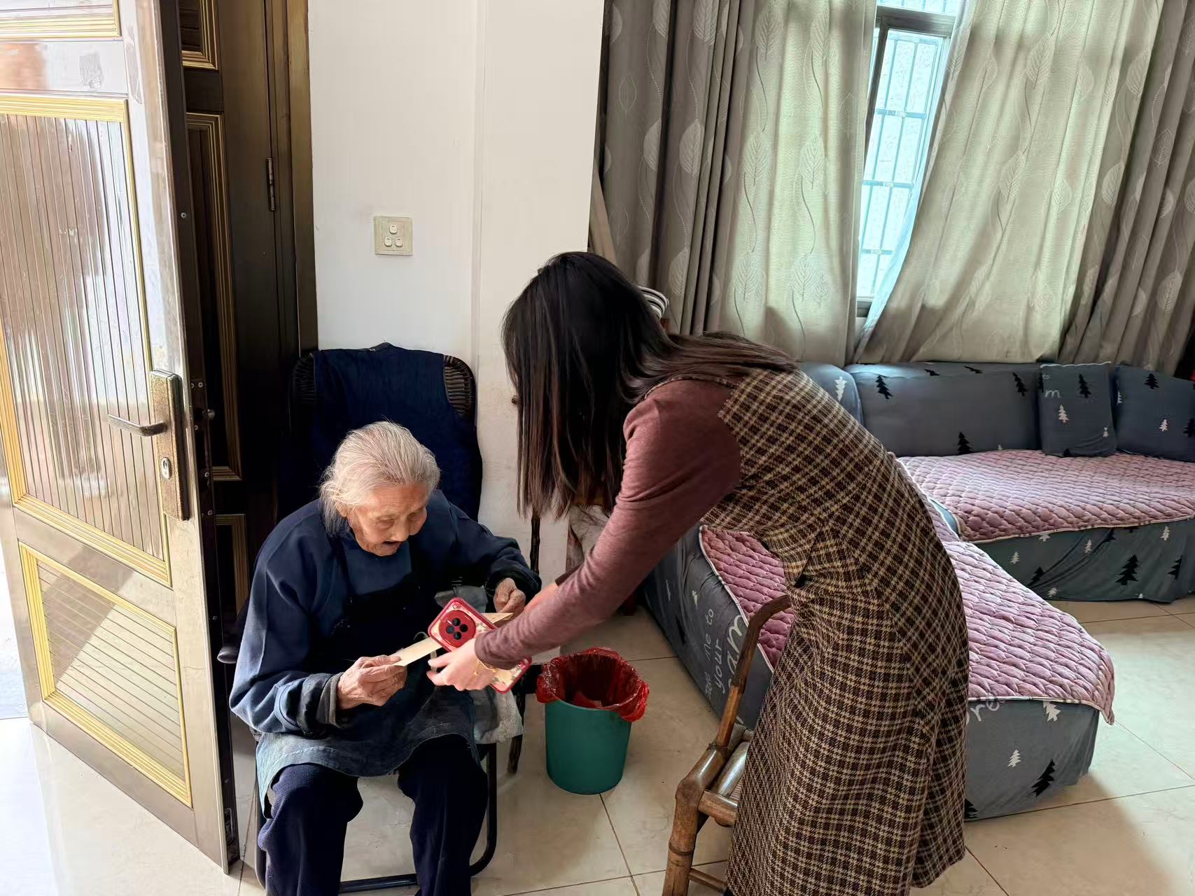 樂齡中心志愿者為村里老人送去長壽糕,蘊含著"步步登高、福壽綿長"的美好祝愿。