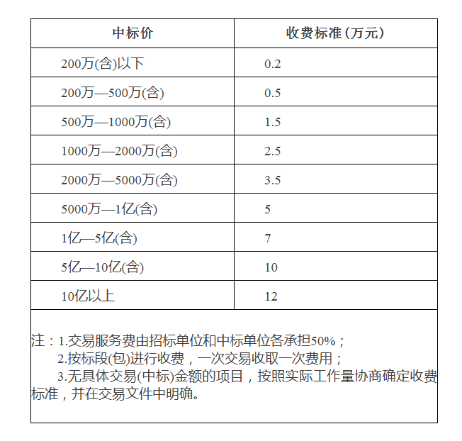 紹興市公共資源交易中心(含分中心)工程目建設項交易服務收費標準